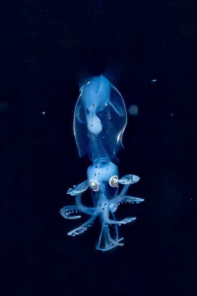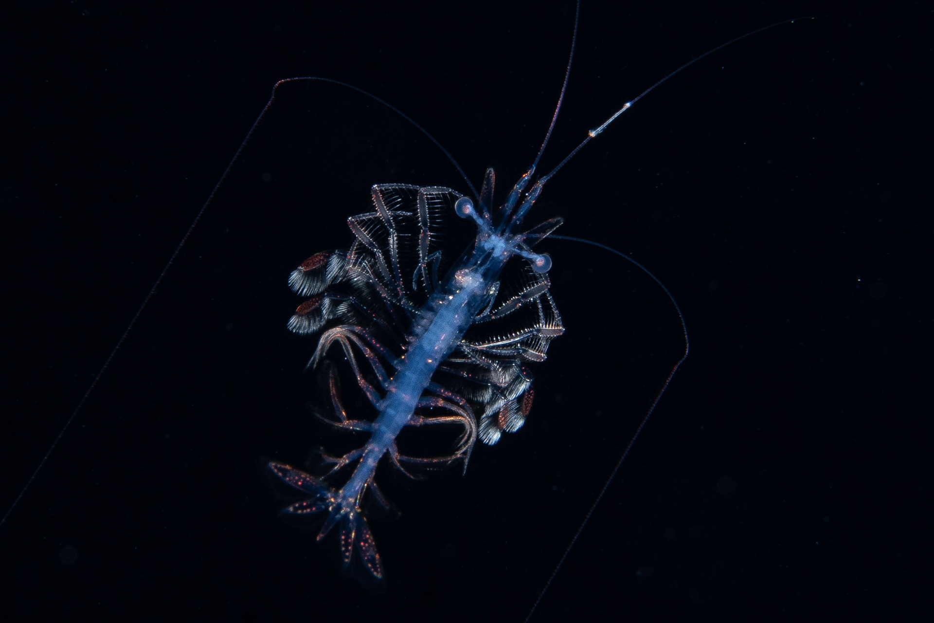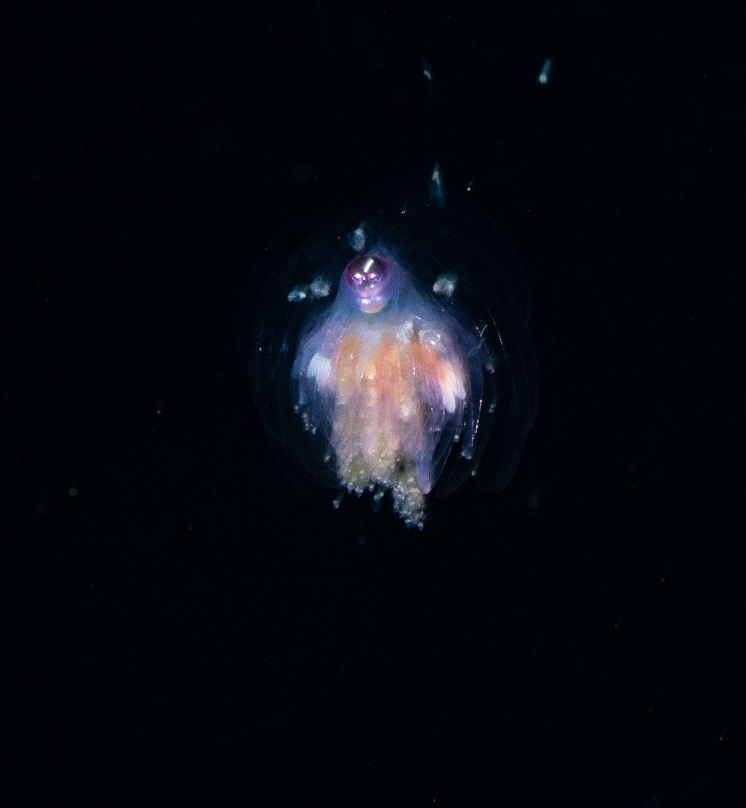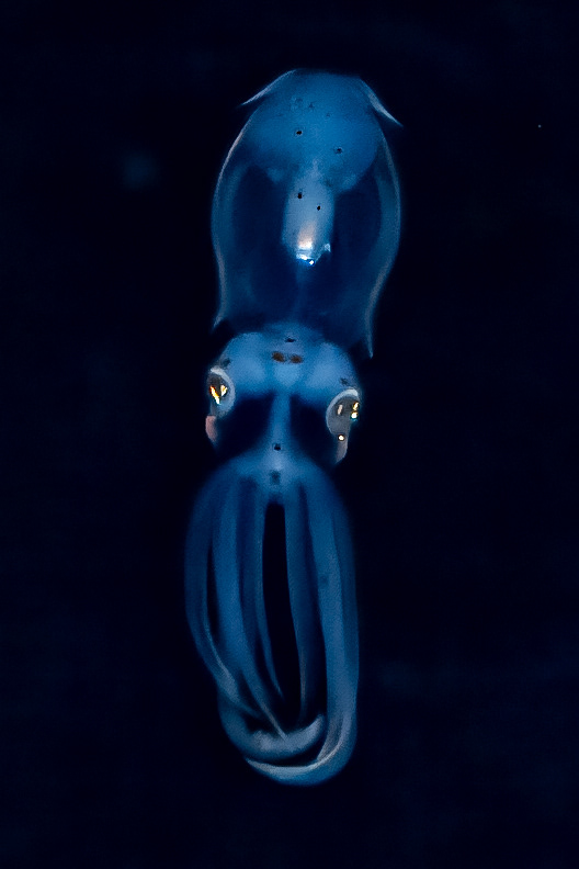 Blackwater diving off Kailua-Kona, HI is an interesting experience. Essentially attached to a line 40' under the boat, in 6000' of water watching the biggest migration of animal life in the world as all the small animals come up from the deep at night. It also takes some skill with the right camera hardware as these animals are between .5 cm and 2", and moving against a very dark background.
